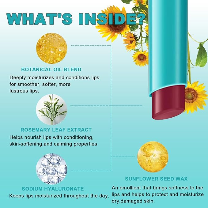 - [Long-lasting Hydration]The ingredients of this causemetics lipstick crayon include botanical oil blend, sodium hydrogenate, sunflower seed wax, etc. The tinted lip balm can keep your lips moisturized and the lipstick hydrating stay all day, giving your lips a soft, tinted glow.