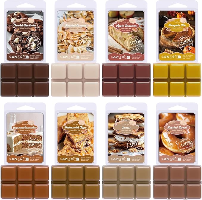 Bakery Scented Wax Melts, Holiday Scented Wax Melts, Strong Scented Soy Wax Cubes/Tarts for Warmer, Candle Wax Melts for Home, Roasted Coconut,Apple Cinnamon,Pumpkin Pie,Smores - 8x2.5oz