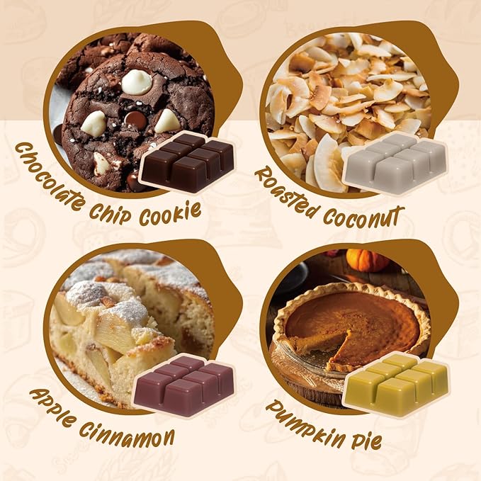 - Scents That Last– One melt, hours of cozy fragrance. Each cube is designed to fill your space with a rich, long-lasting aroma that lingers—like a freshly baked treat cooling on the counter.