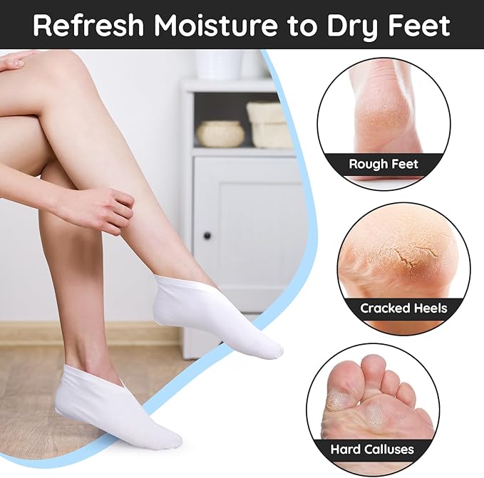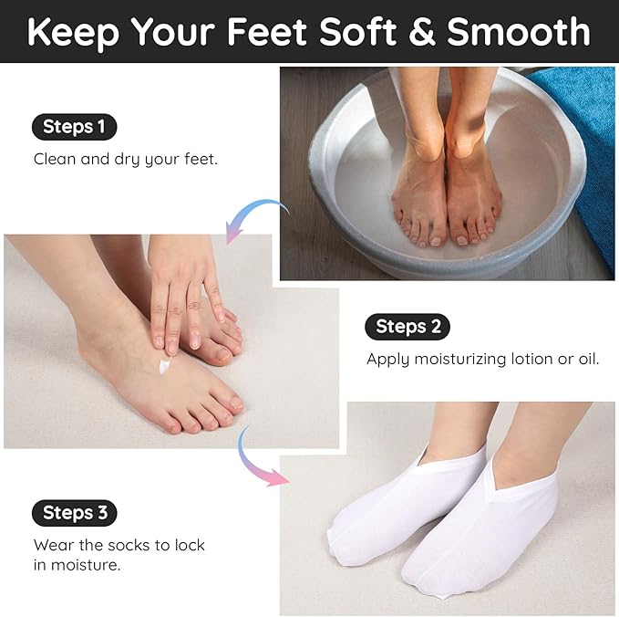 - Easy to Use: Simply soak your feet in warm water for a few minutes, dry off and apply lotion, and then wear the cotton lotion socks to help moisturize your feet when sleeping