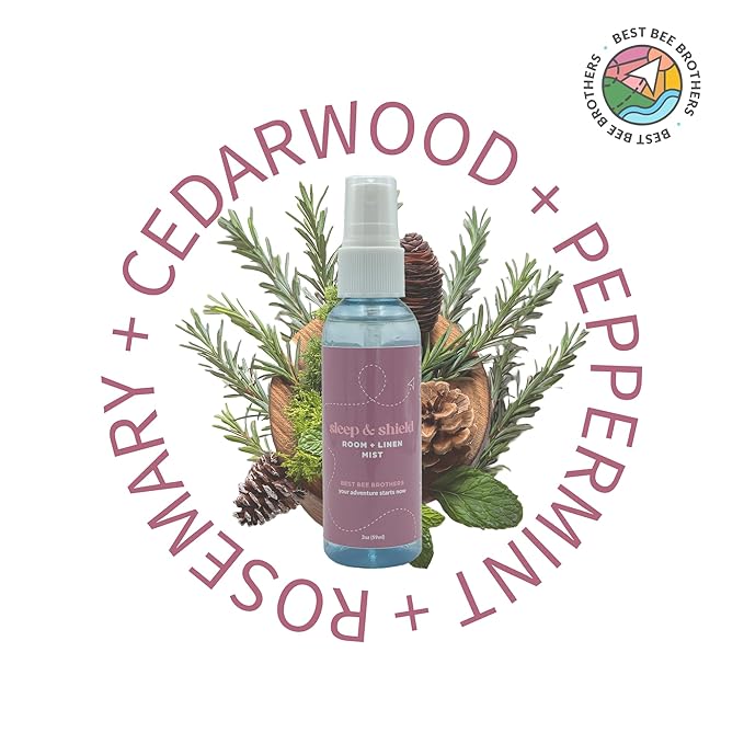 Best Bee Brothers, Sleep & Shield Calming Room + Linen Mist, 2 oz, Natural Essential Oil Blend with Peppermint, Cedarwood and Rosemary
