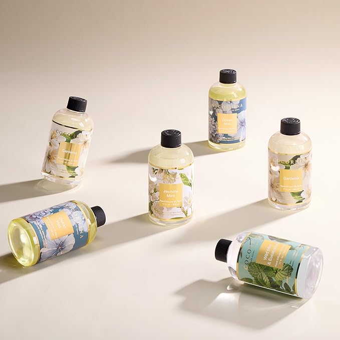 Cocorrína Reed Diffuser Refill Jasmine&Mint 17oz (500ml) with 8 Sticks - Premium Long-Lasting Scented Oil, Home Fragrance for Bedroom, Bathroom Home Decor