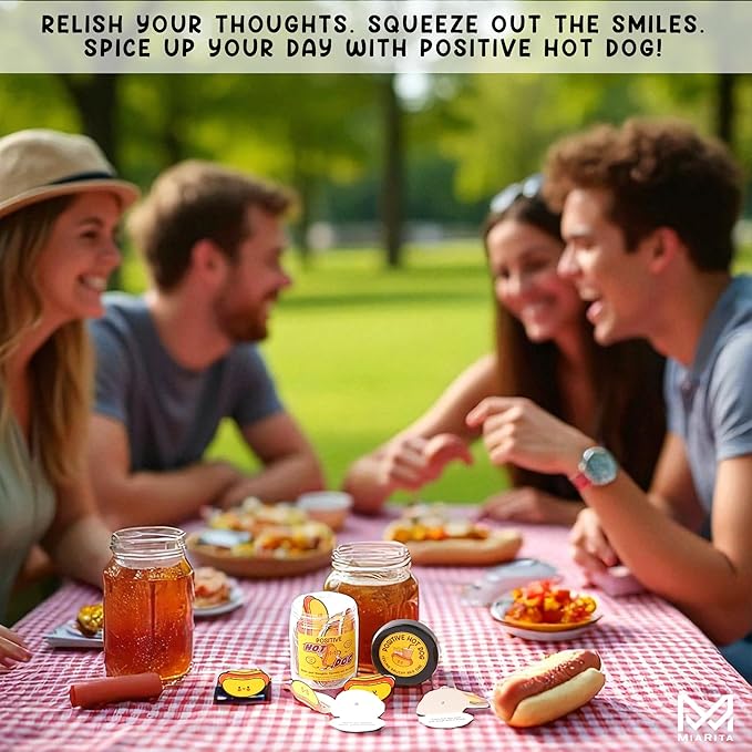 Positive Hot Dog Jar, Emotional Supports Jar, 60 Affirmation Cards Cheer Up Funny Gag Gifts for Best Friend Birthday Women Teacher, Feel Better Gifts for Women