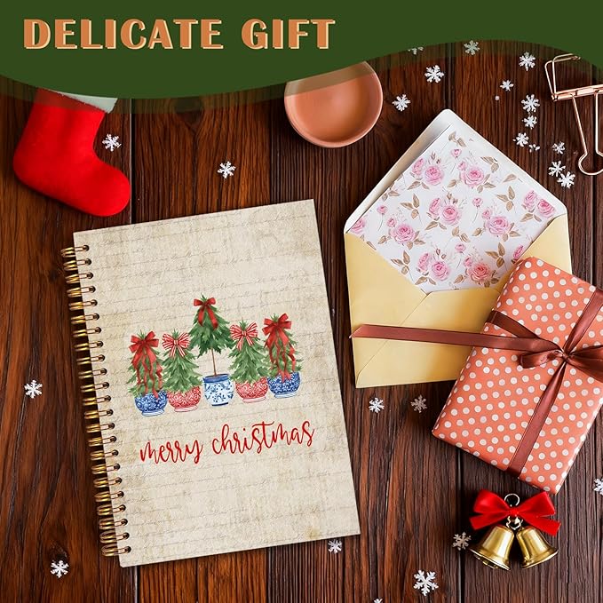 Exqcom Red and Blue Chinoiserie Christmas Tree Spiral Notebook Gifts, Grandmillennial Christmas Retro Journal for Women, Preppy Red Bow Hardcover Notebook Journal Office School Supplies, 5.5x8.3 Inch