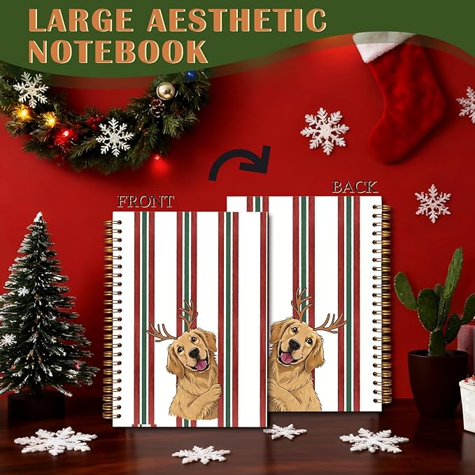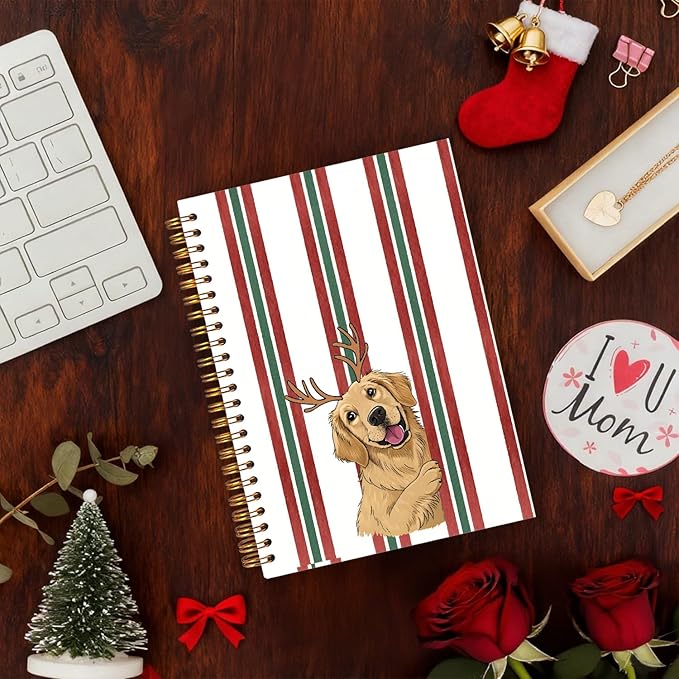 Exqcom Christmas Golden Retriever Spiral Notebook Gifts, Golden Retriever Lover Gifts Journal for Women, Striped Funny Dog Hardcover Notebook Journal Office School Supplies, 5.5x8.3 Inch