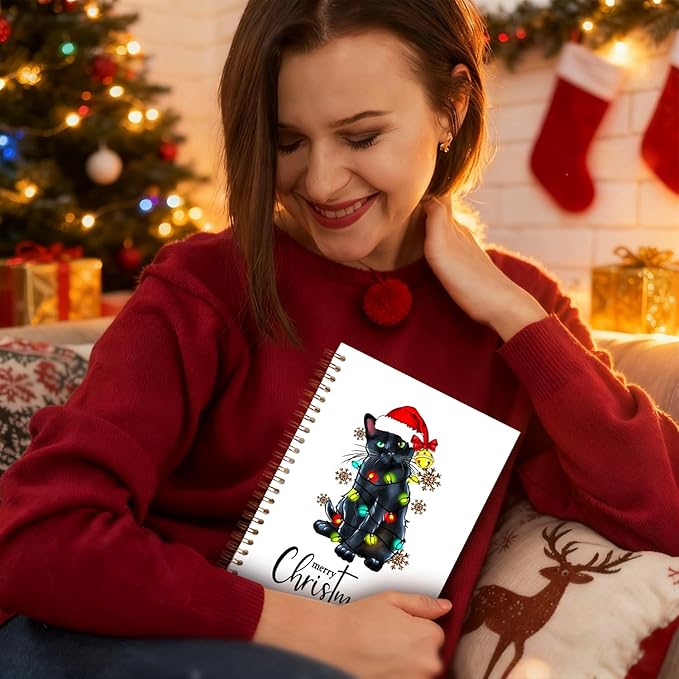 Exqcom Christmas Black Cat Spiral Notebook Gifts, Black Cat Gifts, Merry Christmas Journal for Women, Winter Holiday Funny Kitty Hardcover Notebook Journal Office School Supplies, 5.5x8.3 Inch