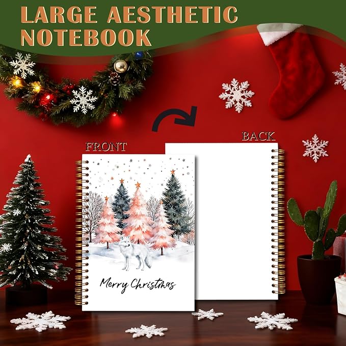 Exqcom Christmas Tree Arctic Fox Spiral Notebook Gifts, Winter Christmas Journal for Women, Snowy Forest Animals Xmas Hardcover Notebook Journal Office School Supplies, 5.5x8.3 Inch
