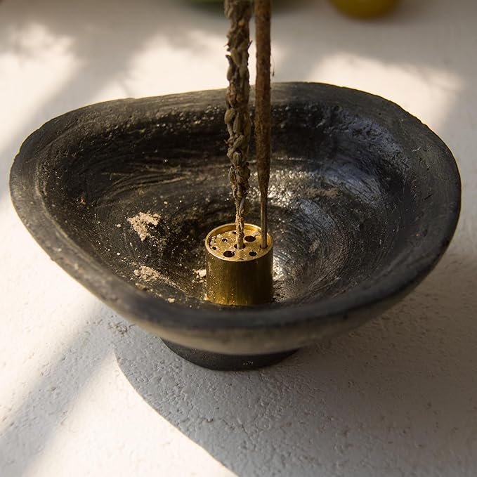 Handmade Rustic Black Terracotta Incense Holder, Ceramic Palo Santo & Sage Sticks Bowl,Wabi‑sabi & Retro, A Spiritual Decor for Yoga&Meditation (Black)