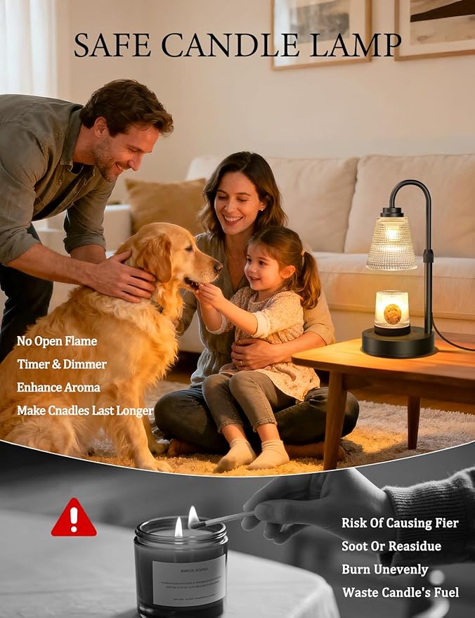 - 【Safety and Aesthetics】The candle lamp warmer blends classic elegance with a modern aesthetic, featuring a metal base and glass shade for a timeless, refined feel. Dimmable candle warmer lamp with timer perfect for illuminating living rooms, bedrooms, studies, offices, yoga studios, and more, it offers both practicality and decorative appeal
