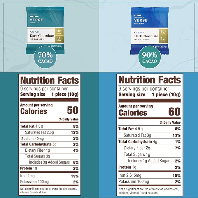 Verse Dark Chocolate Squares Variety Pack - Original and Sea Salt w/Low Cane Sugar, High Cacao - Premium Dark Chocolates - Individually Wrapped Chocolate Squares (9 Count, 2 Pack)