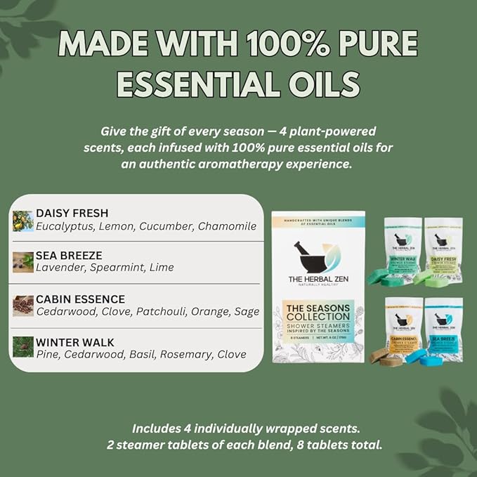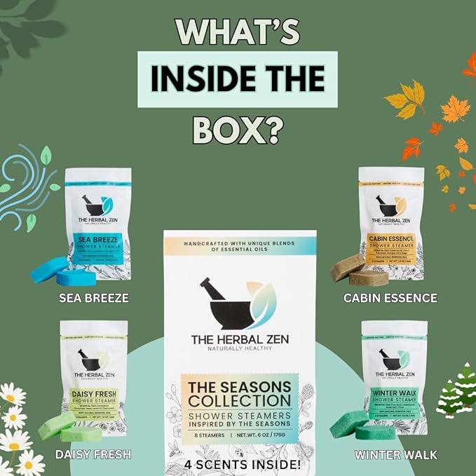 - NATURAL HOME SPA EXPERIENCE: Transform your daily shower into a calming self-care ritual with Herbal Zen Shower Steamers. Infused with 100% pure essential oils, our shower melts deliver a luxurious spa experience—right in your own bathroom. Affordable, convenient, and soothing.