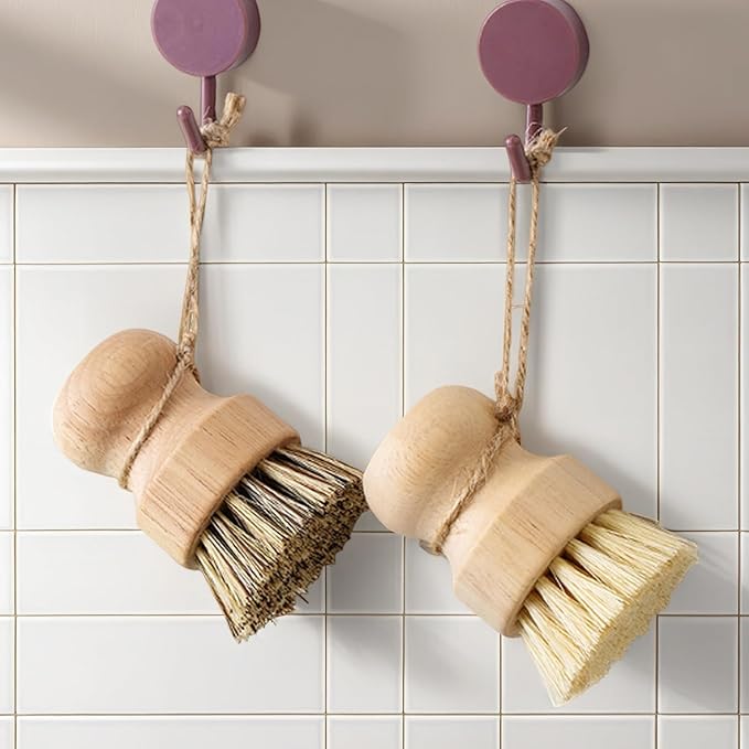 3 Pack Wood Dish Brush Set, Wood Scrub Brush for Dishes with Natural Sisal Bristles for Cleaning Pots, Pans and Vegetables