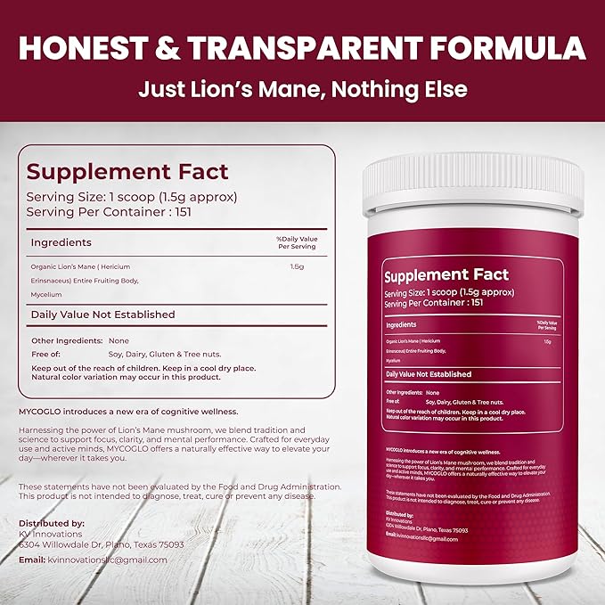 Organic Lions Mane Mushroom Powder – 100% Pure Plant-Based Superfood – Supports Focus, Clarity & Everyday Vitality – Rich in Natural Nutrients & Antioxidants – Perfect for Smoothies, Coffee & Tea