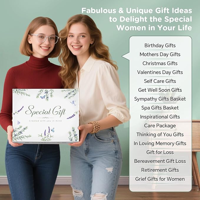- Elegant Gift Package - Presented in a refined mint green gift box with an greeting card adorned with flowers and butterflies, with a matching envelope. The card is blank with lined pages so you can add your heartfelt wishes. This makes the gift both ready to present and deeply personal. Ideal as birthday gifts for wife, Mother’s Day, gifts for women, get well soon care packages or thank you gifts for women. Also suitable as holiday gift baskets, self care gifts for sister, or encouragement gift baskets for coworkers. A timeless spa gift basket for women that blends elegance, love and care.