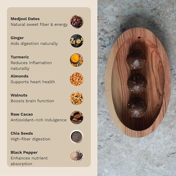 - Made with Organic Ingredients – Crafted in small batches from premium Medjool dates, nuts, and superfoods; never any refined sugars, preservatives, or artificial flavors.
