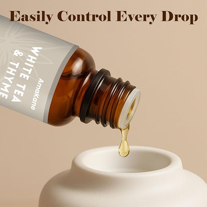AmaKane White Tea& Thyme Fragrance Oil 30ml, Hotel Essential Oil Inspired by Hilton Hotels, Premium Diffuser Oil for Home, Long-Lasting Aromatherapy Oil, Candle & Soap Making Scents