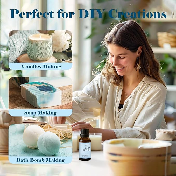 - Clean Aroma: this AmaKane Warm Cotton fragrance oil blends bright citrus and verbena with soft cotton flower, orange blossom, and marine notes, finished with warm musk and amber
