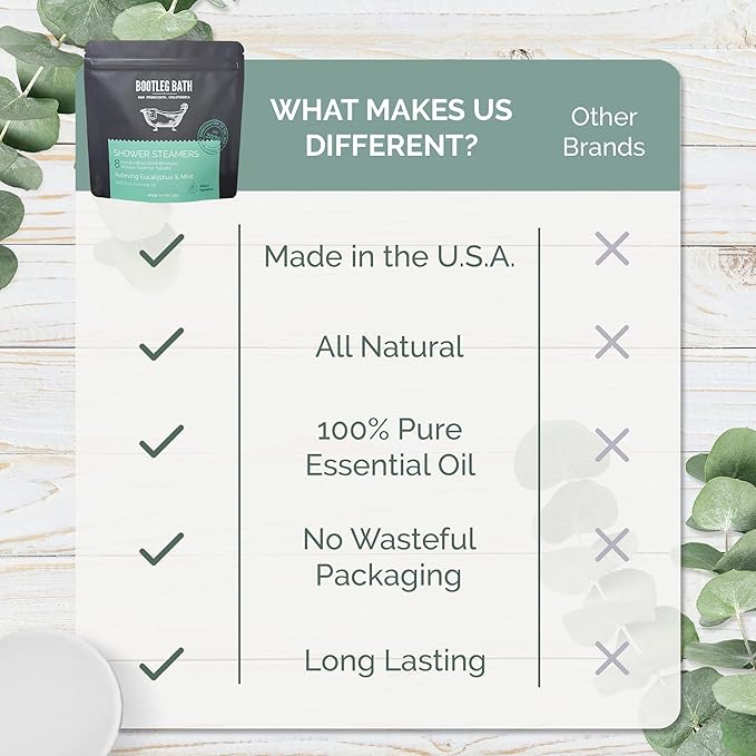 - Aromatherapy - Each shower steamer is made using 100% Pure Essential Oils and Natural Menthol to calm your mind and refresh your senses, that will leave you rejuvenated with each use.