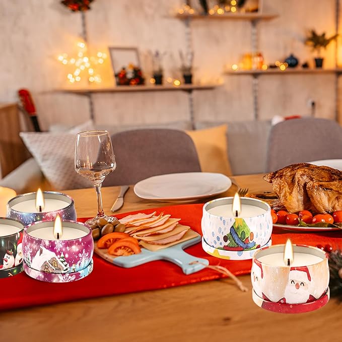 - Versatile Holiday Decor Compact 2.4” tins fit anywhere—mantels, tables, bathrooms, or as stocking stuffers. Create a cozy, festive atmosphere for Christmas parties, dinners, or quiet nights.