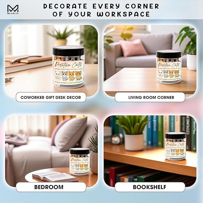 - ๐พ 60 Affirmation Cards for Daily Calm : Open the Positive Cats Jar to discover 60 uplifting cards crafted to ease anxiety and encourage mindfulness. Perfect for self care gifts for women and stress relief gifts that bring peace one paw at a time.