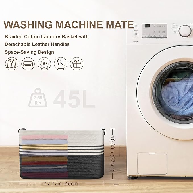 - HOUSEHOLD STORAGE SOLUTION:45L storage basket. The basket can hold the entire family's daily laundry and can be used as a toy storage basket, a baby laundry basket, a blanket/throw storage for living room or a towel basket for bathroom, a nursery laundry basket