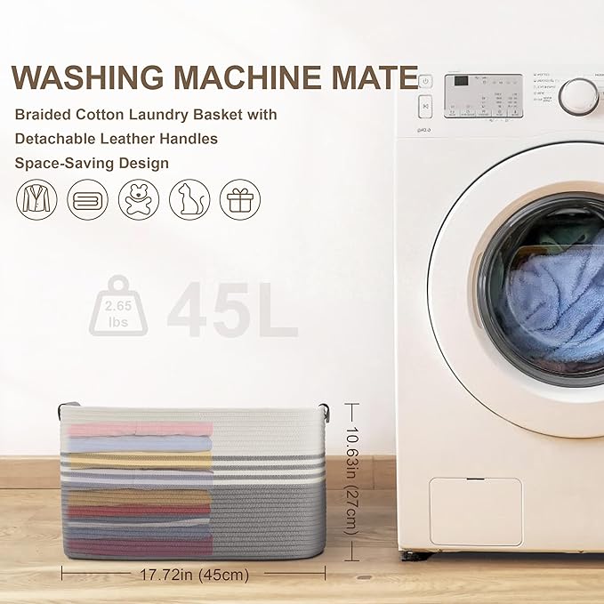 - HOUSEHOLD STORAGE SOLUTION:45L storage basket. The basket can hold the entire family's daily laundry and can be used as a toy storage basket, a baby laundry basket, a blanket/throw storage for living room or a towel basket for bathroom, a nursery laundry basket