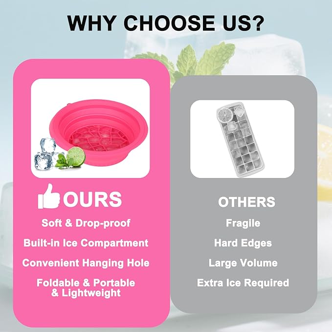 - 【Foldable & Portable】-- Our ice face bowl has a built-in hook on the edge for easy hanging. It can be easily folded into a compact size for easy carrying and storage, perfect for camping, traveling and outdoor adventures.