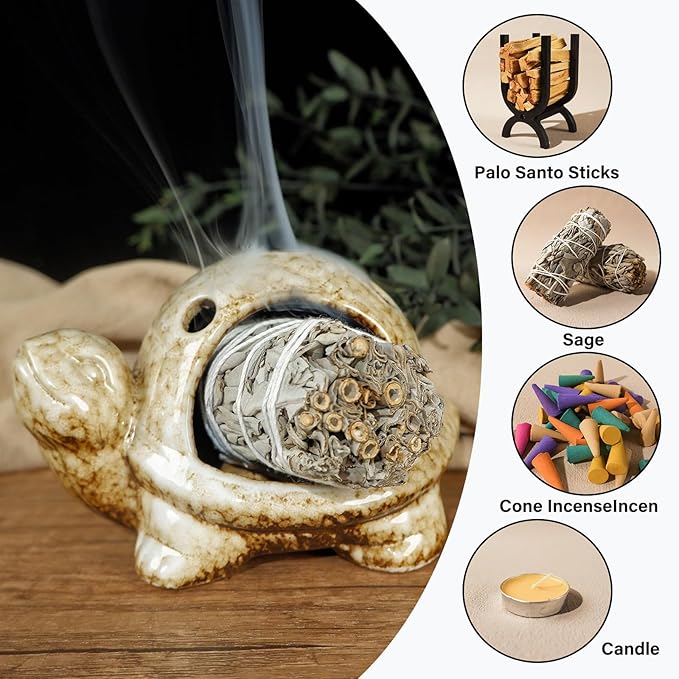 - šÆTortoise-Inspired Cultural CharmDrawing on the tortoiseās symbolism of longevity and stability, the holderās mini chiminea design (with vented chimney holes) adds cultural depth. It fosters a strong connection with nature, making it ideal for burning incense cones, sage, or smudging sticks to transform your space into a serene sanctuary.