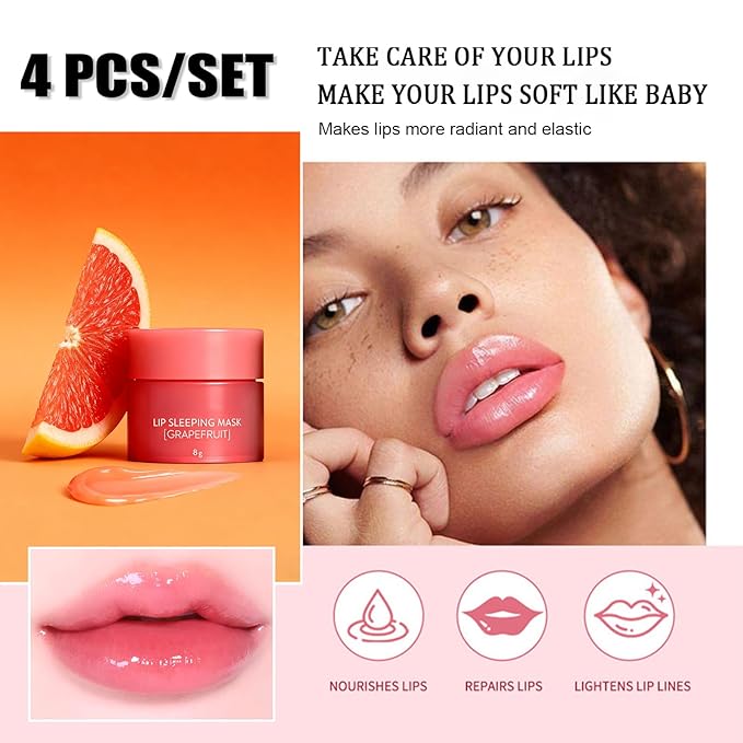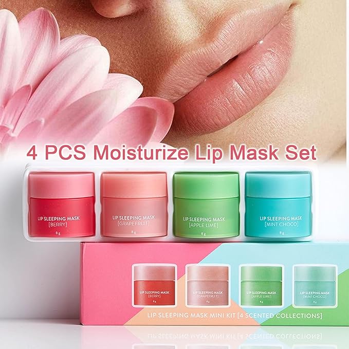 4PCS Lip Sleeping Mask,Korean Lip Mask Jelly Sleep Lip Balm,Lip Mask Set,Reduce Lip Lines and Improve Lip Color,Overnight Lip Treatment Care for Dry Cracked Lips,Moisturizing, Hydrating, Nourishing