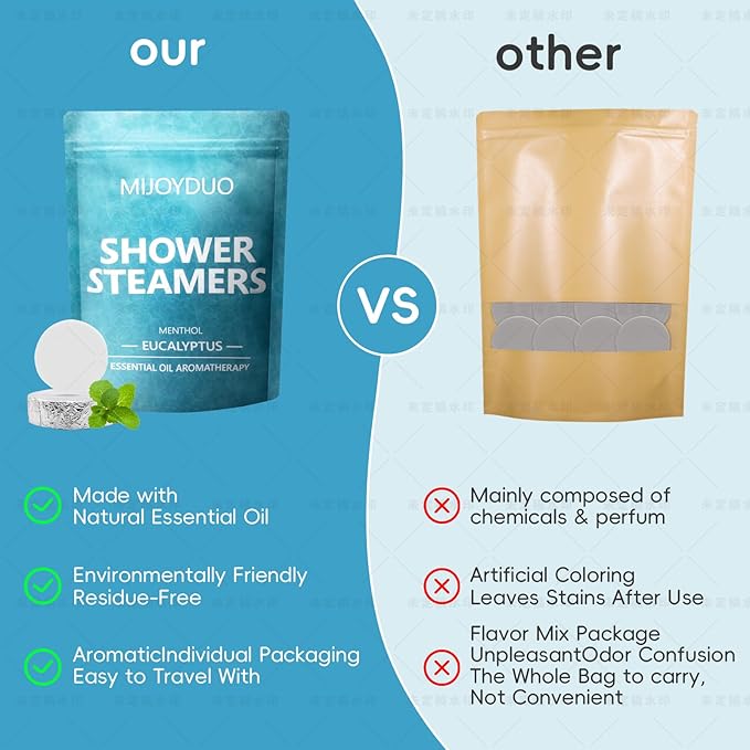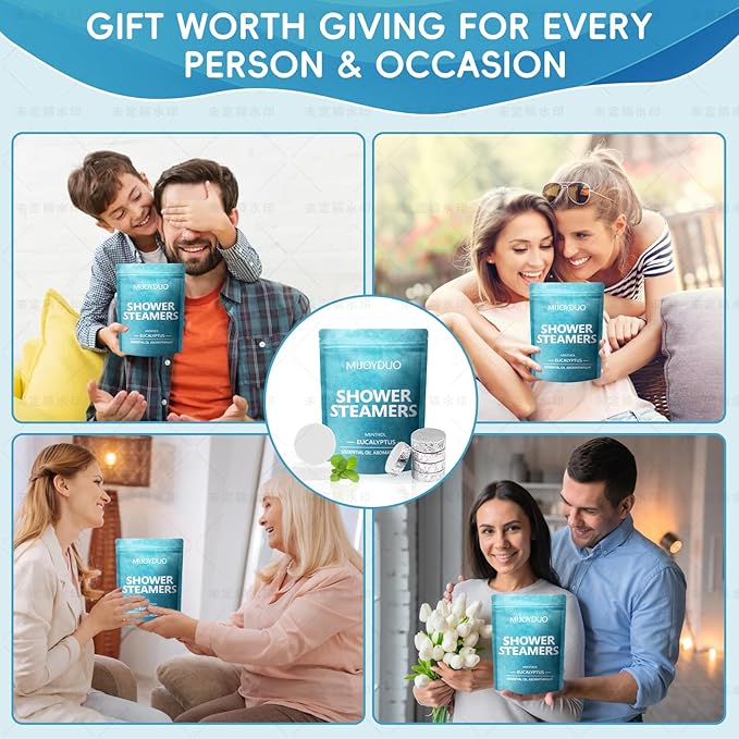 - 【Easy to use】Body restore shower steamers is easy to use. Just put a Eucalyptus & Mint Shower Bomb in the shower area and let the hot water steam dissolve it. In a few minutes, the bathroom will be filled with fragrance, creating a space for relaxation and easy enjoyment of a comfortable spa experience.