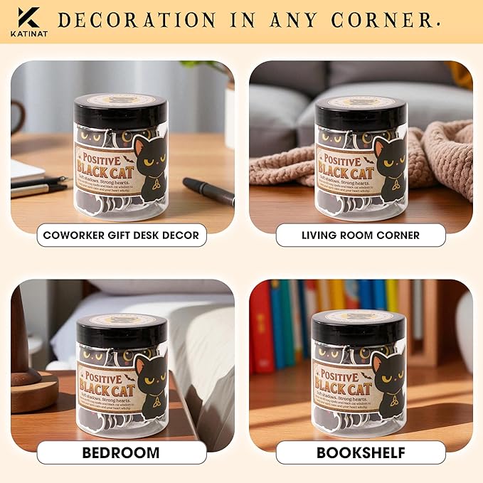 - π€ Charming Black Cat DΓ©cor & Gifts β Whether used as black cat gifts for women, cat mom gifts, or trendy cat gifts for women, this jar blends cozy affirmations with spooky-chic design that fits any Halloween display.