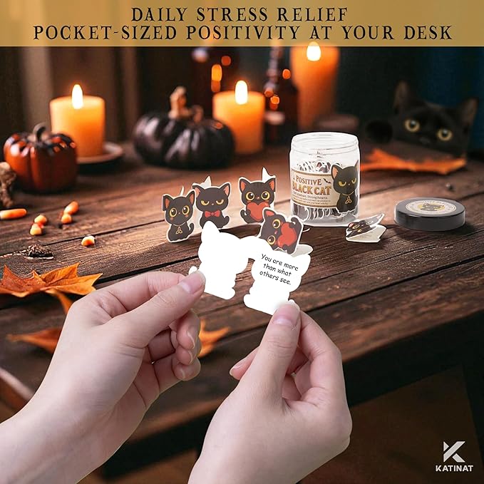 Positive Black Cats Jar β 60 Affirmation Cards for Anxiety & Self Care, Black Cat Halloween Gifts for Women, Teens & Men, Mental Health & Stress Relief Support Gifts, Halloween Decor