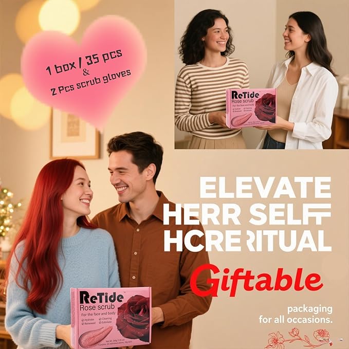 - GIFT SET INCLUDES:Upgrade your routine with our premium Rose Body Scrub set. Each box contains 35 individually wrapped scrub packs (10g/0.35oz each) and 2 Pcs exfoliating gloves. The enchanting rose scent turns your shower into a spa-like experience.