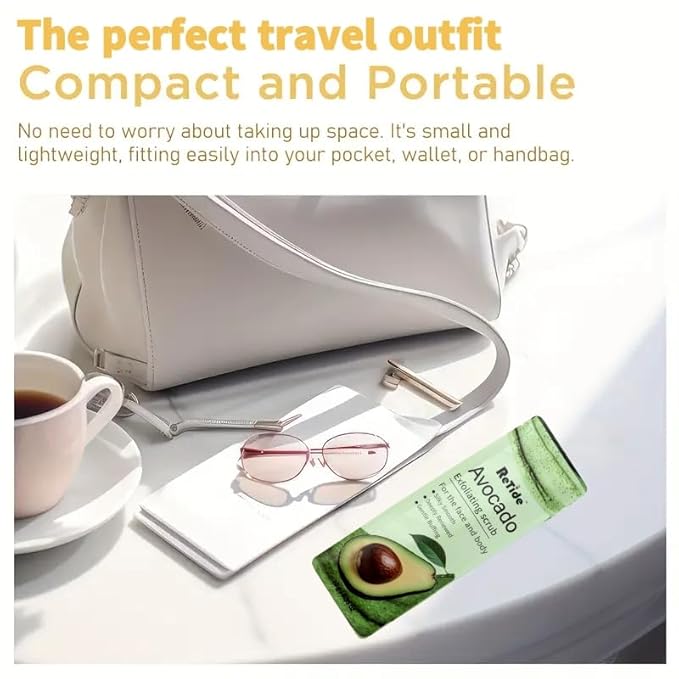 - GIFT SET INCLUDES:Upgrade your routine with our premium Avocado Body Scrub set.Each box contains 35 individually wrapped scrub packs (10g/0.35oz each) and two exfoliating gloves.The enchanting Avocado scent turns your shower into a spa-like experience.