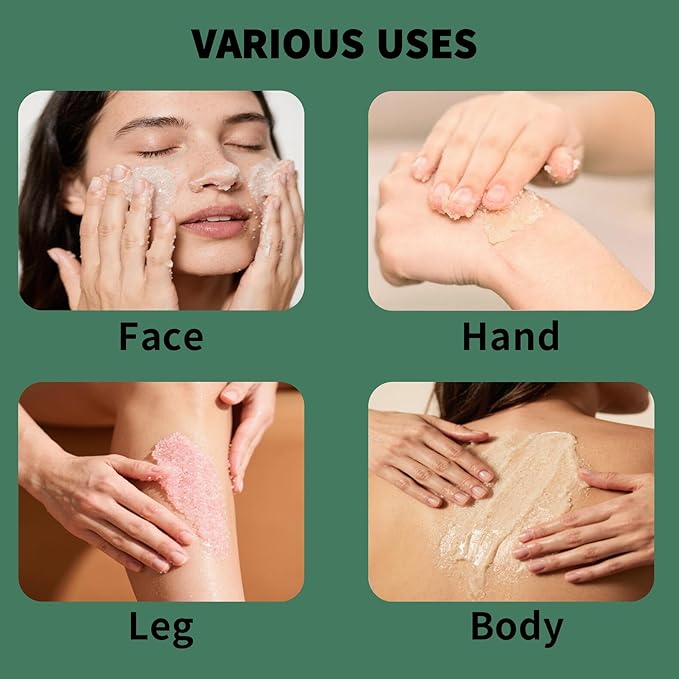 - FOR FACE & BODY:A versatile scrub that is gentle enough for facial use yet effective on the body. It helps to smooth rough areas on feet, elbows, and knees, making it a comprehensive foot scrub and body scrub in one. Suitable for all skin types.