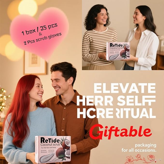 - GIFT SET INCLUDES:Upgrade your routine with our premium Coconut Body Scrub set.Each box contains 35 individually wrapped scrub packs (10g/0.35oz each) and 2 pcs exfoliating gloves.The enchanting Coconut scent turns your shower into a spa-like experience.