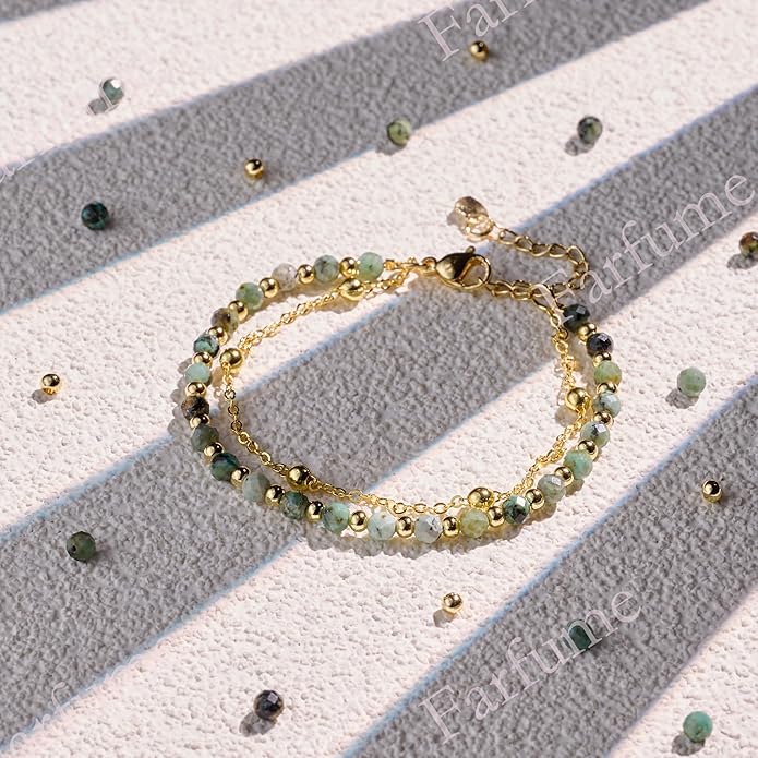 - Natural Handmade African Turquoise Bracelets: Our crystal beaded bracelets are carefully handcrafted using African Turquoise,Paired with 18K gold-plated accents, this piece blends earthy elegance with timeless sophistication. Since each crystal is naturally formed, the exact color and veining may vary slightly from the product images, making your bracelet uniquely yours