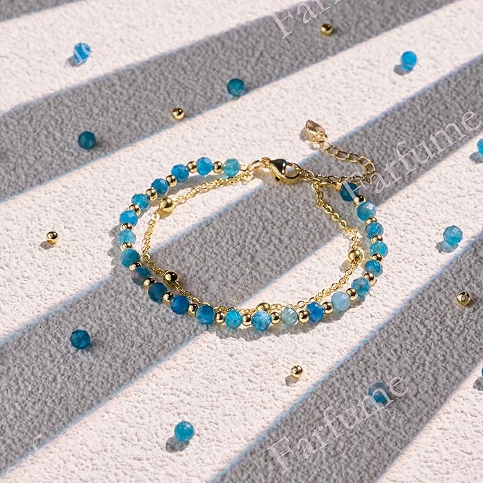 - Natural Handmade Apatite Gemstone Bracelets: Our crystal beaded bracelets are carefully handcrafted using Apatite Gemstone,Paired with 18K gold-plated accents, this piece blends earthy elegance with timeless sophistication.Since each crystal is naturally formed, the exact color and veining may vary slightly from the product images, making your bracelet uniquely yours