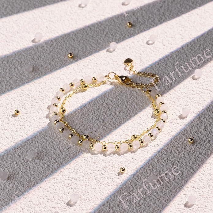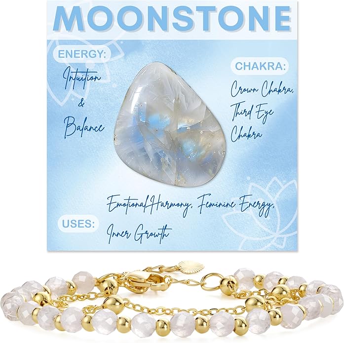 - Natural Handmade Moonstone Bracelets: Our crystal beaded bracelets are carefully handcrafted using Moonstone,Paired with 18K gold-plated accents, this piece blends earthy elegance with timeless sophistication. Since each crystal is naturally formed, the exact color and veining may vary slightly from the product images, making your bracelet uniquely yours