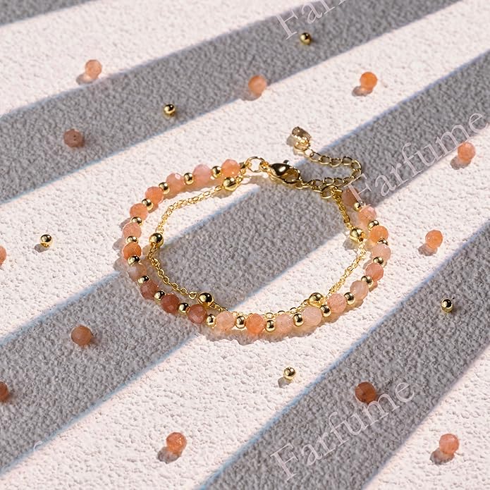 - Natural Handmade Sunstone Bracelets: Our crystal beaded bracelets are carefully handcrafted using Sunstone,Paired with 18K gold-plated elements, this piece blends earthy elegance with timeless sophistication. Since each crystal is naturally formed, the exact color and veining may vary slightly from the product images, making your bracelet uniquely yours