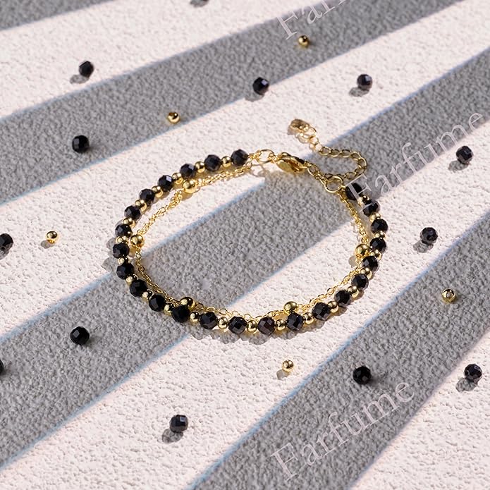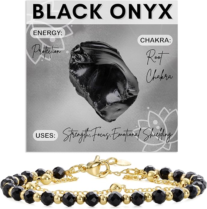 - Natural Handmade Black Onyx Bracelets: Our crystal beaded bracelets are carefully handcrafted using Black Onyx,Paired with 18K gold-plated accents, this piece blends earthy elegance with timeless sophistication. Since each crystal is naturally formed, the exact color and veining may vary slightly from the product images, making your bracelet uniquely yours
