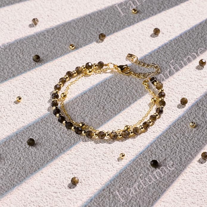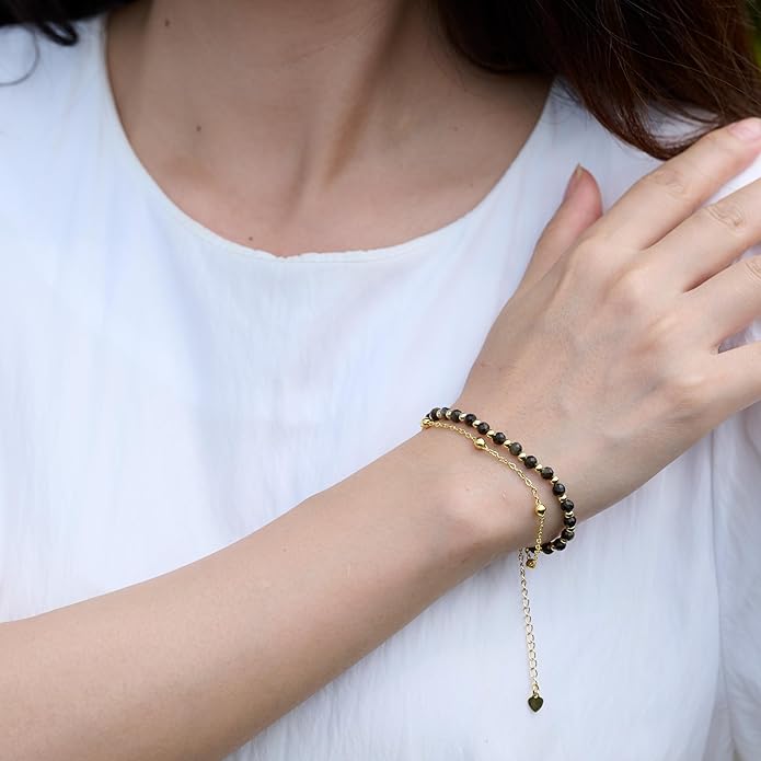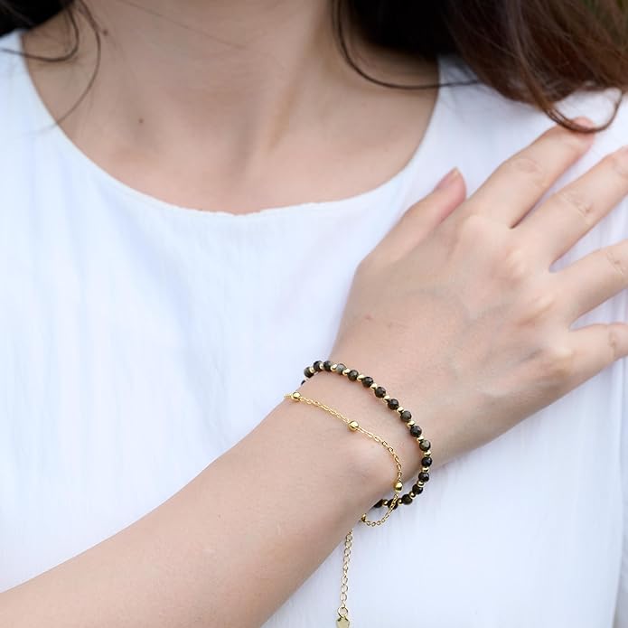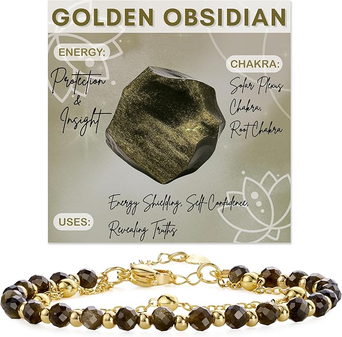 - Natural Handmade Golden Obsidian Bracelets: Our crystal beaded bracelets are carefully handcrafted using Golden Obsidian,Paired with 18K gold-plated accents, this piece blends earthy elegance with timeless sophistication.Since each crystal is naturally formed, the exact color and veining may vary slightly from the product images, making your bracelet uniquely yours