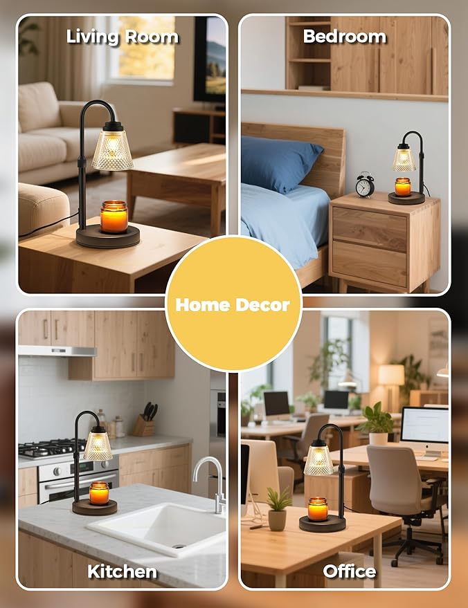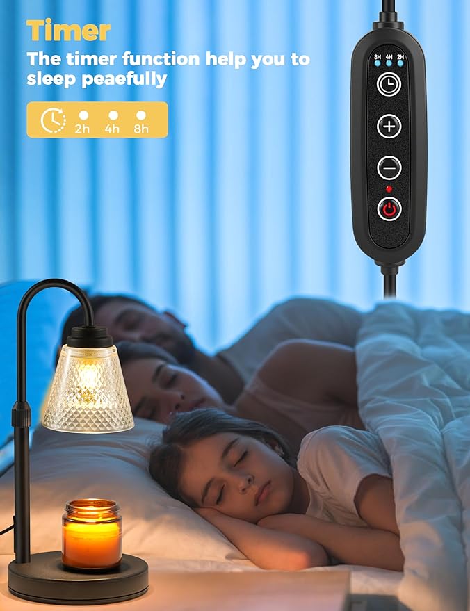 - Timer&Dimmable Controller: This candle burner lamp with timer is dimmable for meeting different ambiance needs. And it has 2 4 8 hours shut-off function. The brighter you set, the faster jar candles melts. It is a beautiful wax melter warmer lamp