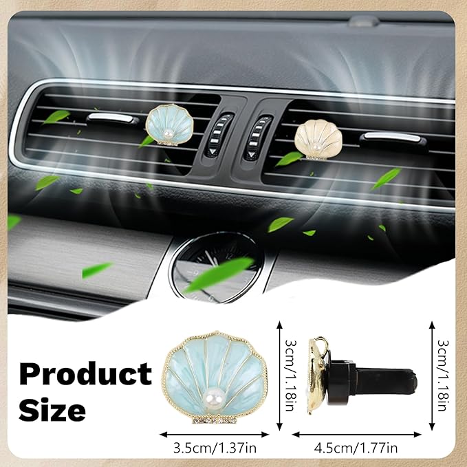 - 2Pcs Rhinestone Car Vent Clips: Includes 2 beautiful Seashell -shaped air fresheners, each adorned with sparkling rhinestones for a touch of bling and elegance to your car interior.
