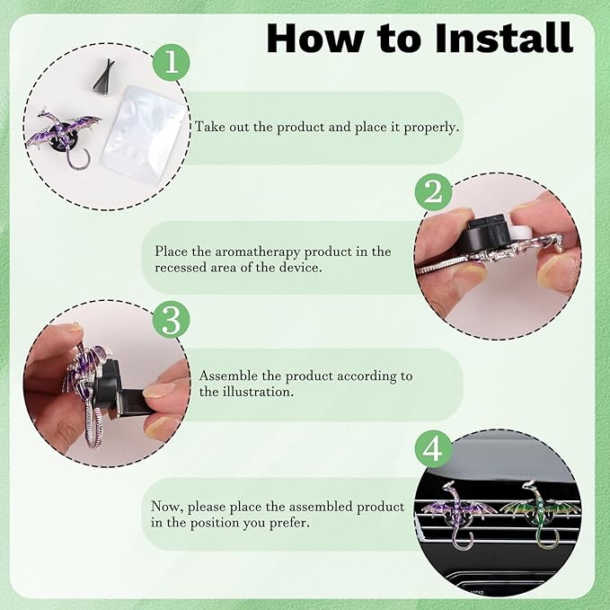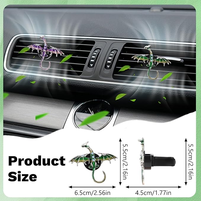 - 2Pcs Rhinestone Car Vent Clips: Includes 2 beautiful Dragon -shaped air fresheners, each adorned with sparkling rhinestones for a touch of bling and elegance to your car interior.