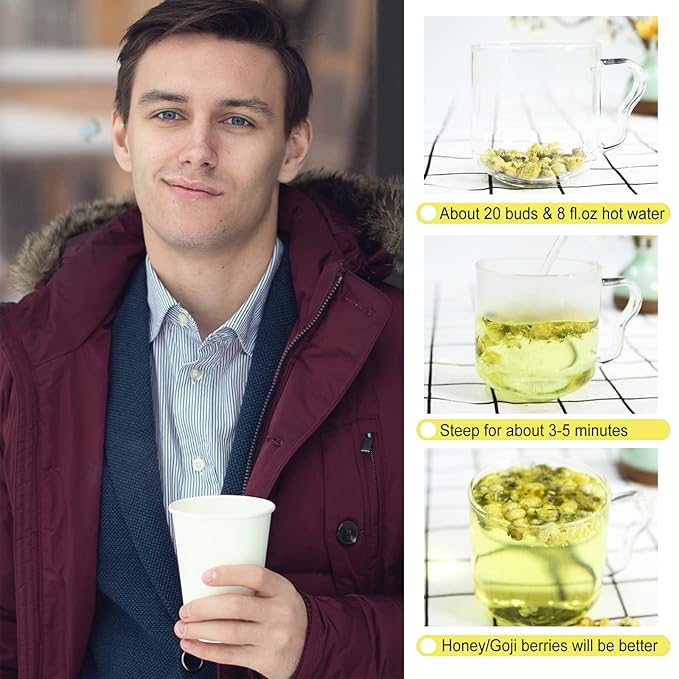 - Top-grade Chrysanthemum: Sourced from Tongxiang, China, we freshly harvest the best quality chrysanthemum flowers, which are non-opened buds that are more nutritious and more flavorful than fully blooming chrysanthemum