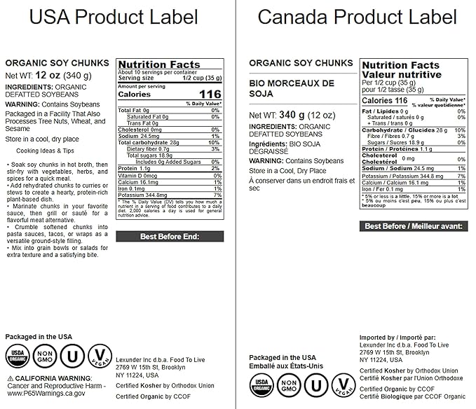 Food to Live Organic Soy Chunks 12 Ounces, – Unsalted Nuggets, High Protein. Plant-Based. Meat Alternate Substitute. Non-GMO. Vegan, Kosher, Bulk