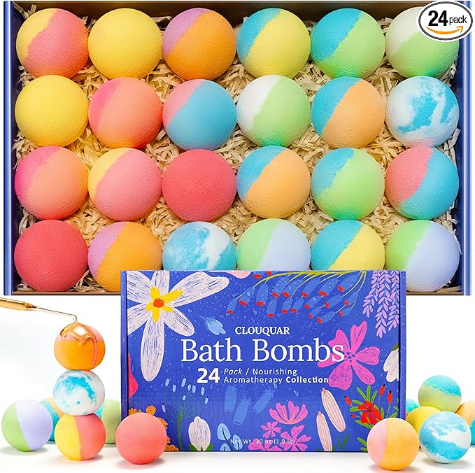 - Gift-Ready for Any Occasion – Packaged in a colorful floral gift box, this 24-pack bath bomb collection makes a thoughtful and practical gift for birthdays, holidays, Valentine's Day, Mother’s Day, Christmas, thank-you surprises, or self-care–themed gift sets. A versatile choice for friends, family members, colleagues, or anyone who enjoys self-care and relaxing bath time