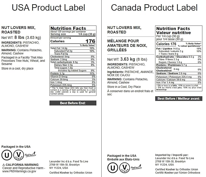 Food to Live Nut Lovers Mix, 8 Pounds – Premium Dry Roasted Pistachios No Shell, Almonds and Cashews Blend. No Salt Added. Trail Snacks for Adults and Kids. Vegan, Kosher, Bulk
