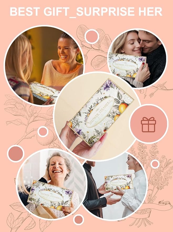 - [Gifts for Women] With 8 captivating fragrances, this shower steamer set makes an excellent Christmas gift, or a special treat for birthdays, anniversaries, or just because moments. Ideal for women who appreciate the luxury of a spa-like experience in their own bathroom.